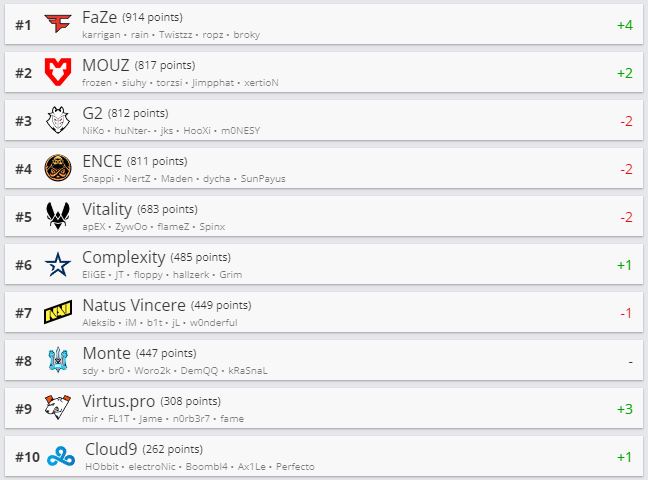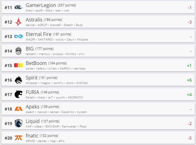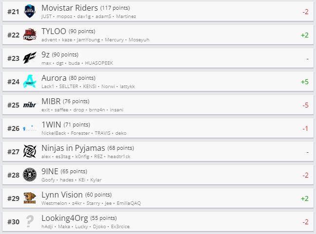 Состав Betera поднялся в рейтинге на 76-е место. Nemiga опустилась на 199-ю строчку. ARCRED с белорусом Ренатом “hurtslxrd” Сапаровым оказалась на 72-й позиции.