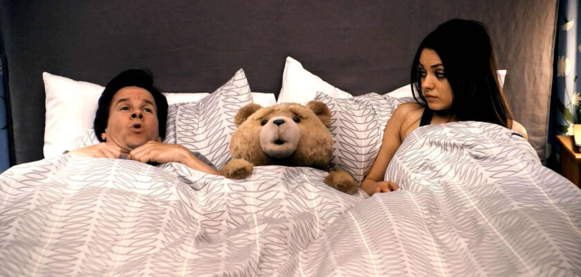 Фильм “Третий лишний” увидел свет в 2012 году и рассказал зрителям историю необычной дружбы Джона Беннетта и его друга — плюшевого медведя Теда. Герои росли вместе, но в определенный момент их дружба переживает сложный период, когда Джон находит девушку и взрослеет, а Тед ведет разгульный образ жизни и приводит домой проституток.