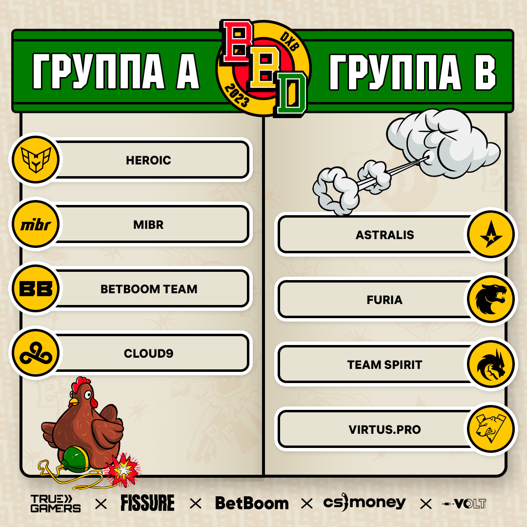 Организаторы соревнований по CS 2 BetBoom Dacha объявили участников LAN-этапа турнира. Всего в состязании примут участие 8 команд, разбитых на сквады. В группе А встретятся: Heroic, Cloud9, MIBR и BetBoom Team. В противоположной сетке В сразятся: Team Spirit, Virtus.pro, FURIA Esports и Astralis. В плей-офф выйдут по две лучшие команды из обоих квартетов. Турнир организовывается букмекерской конторой BetBoom, и студией FISSURE.