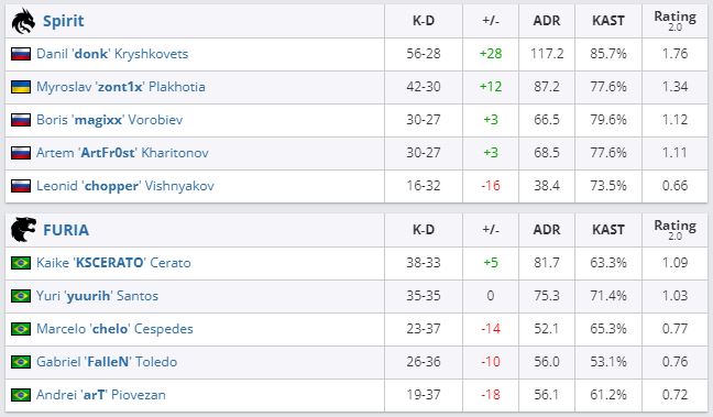 FURIA — Team Spirit — 0:2 (Ancient — 16:12, Mirage — 13:8)