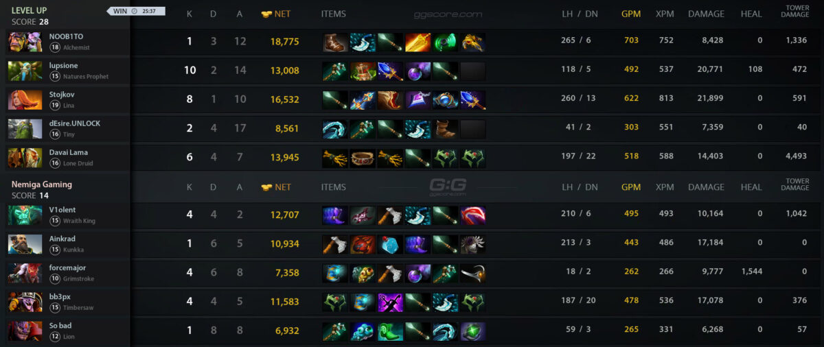 Состав Nemiga Gaming по Dota 2 покинул Pinnacle: 25 Year Anniversary Show. В матче на вылет с турнира ростер уступил Level Up — 0:2.