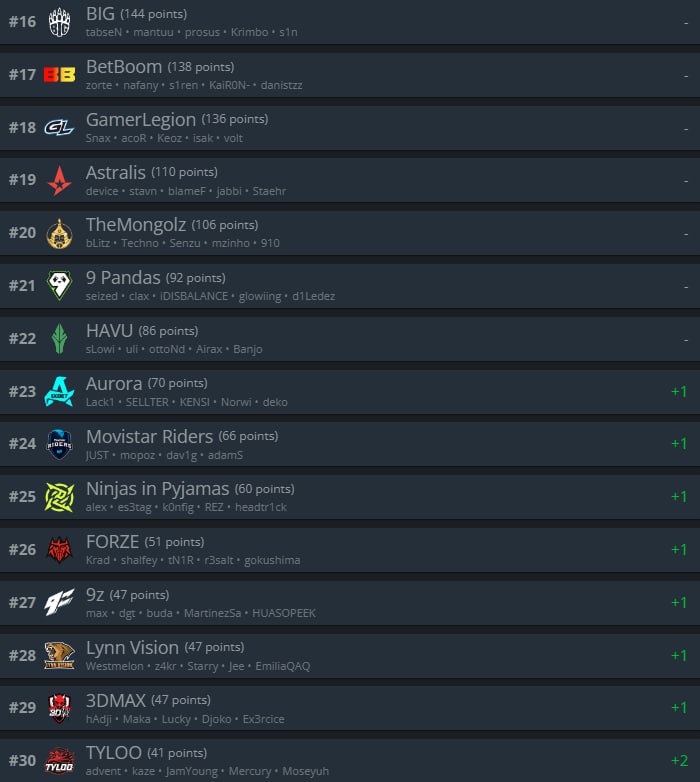 Что интересно, четыре команды из Восточной Европы в списке рейтинга оказались в топ-10. Среди них: Natus Vincere — 4 место, Virtus.pro — 5-ая, Monte в топ-7, а Cloud9 на 9 строчке.