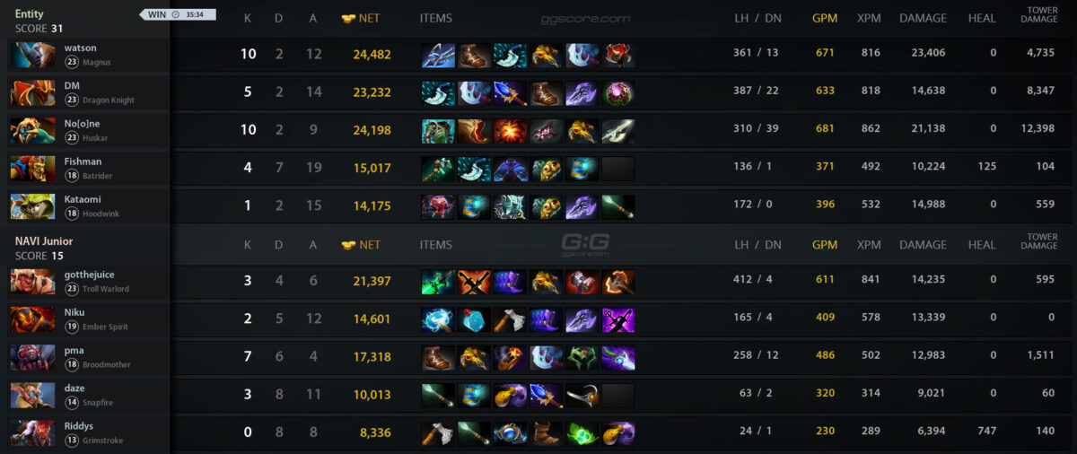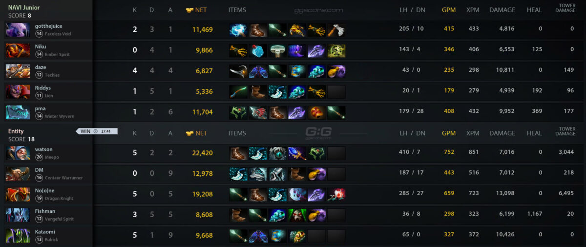 Состав Entity по Dota 2 одержал победу в первом матче верхней сетки закрытой квалификации на ESL One Birmingham 2024. В дебютной встрече турнира коллектив белоруса Дмитрия “Fishman” Полищука обыграл NAVI Junior — 2:0.