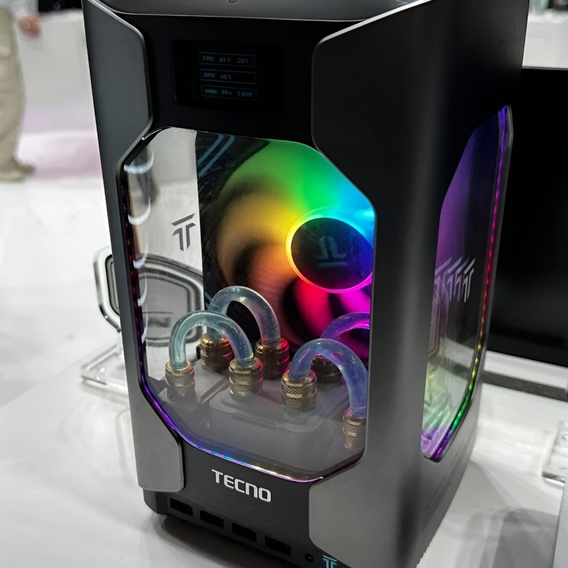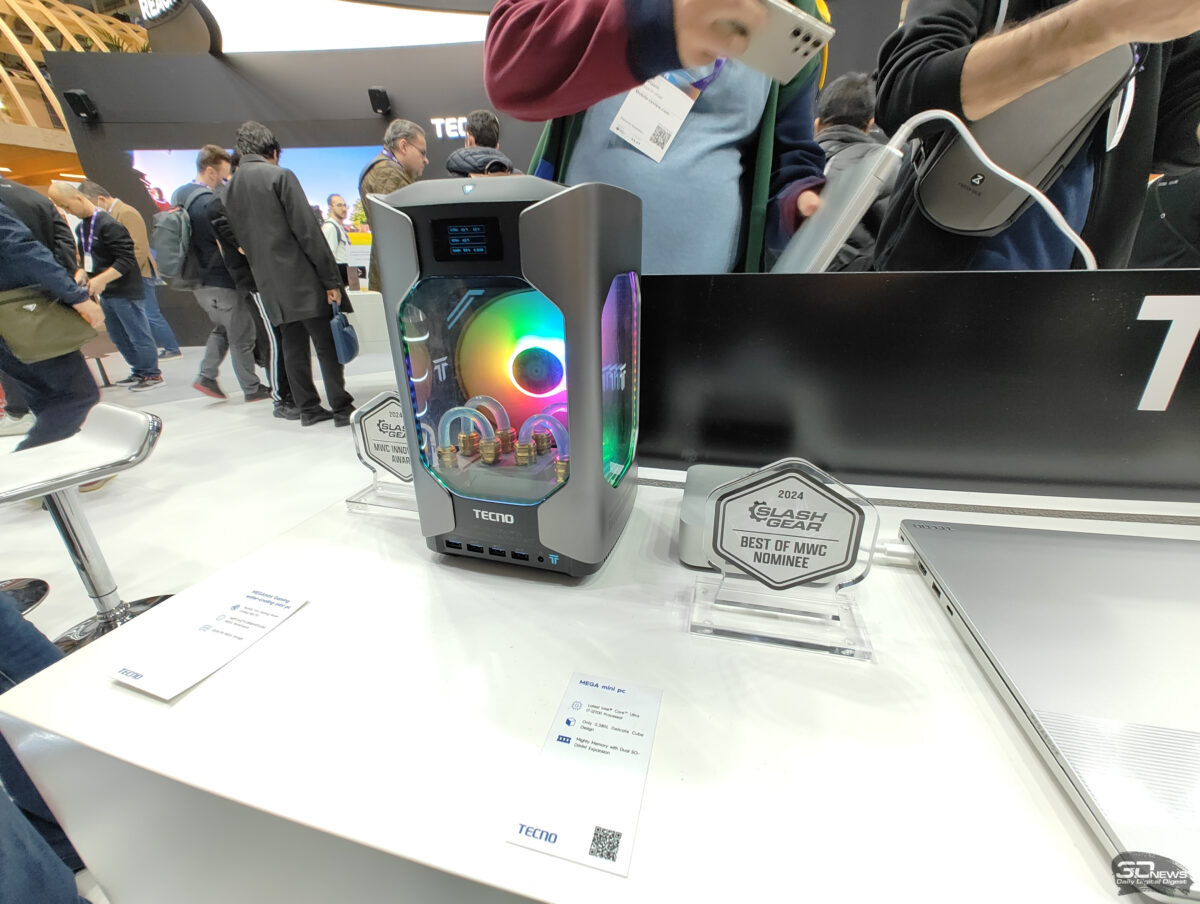 Компания Tecno на выставке MWC 2024 в Барселоне представила миниатюрный игровой компьютер под названием Mega Mini Gaming G1. По заявлению производителя, это самый компактный в мире ПК с жидкостным охлаждением и дискретной видеокартой. Вес компьютера составляет всего лишь 445 грамм. Новинка также предусматривает поддержку беспроводной сети Wi-Fi 6E и высокоскоростное подключение Thunderbolt 4.