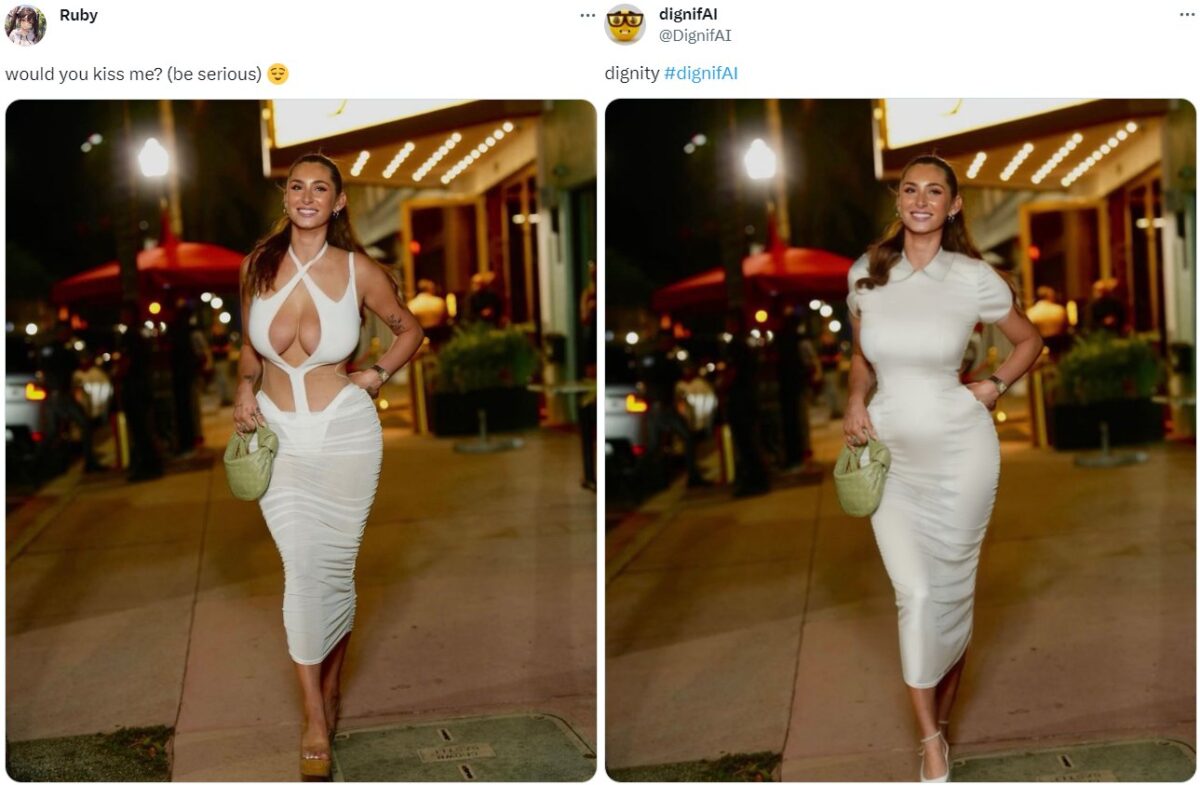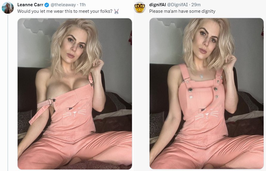 С развитием нейросетей в сети участились случаи появления множества дипфейков со знаменитостями. Однако недавно пользователи сети открыли движение dignifAI. Его суть заключается в одевании обнаженных моделей Onlyfans с помощью искусственного интеллекта.