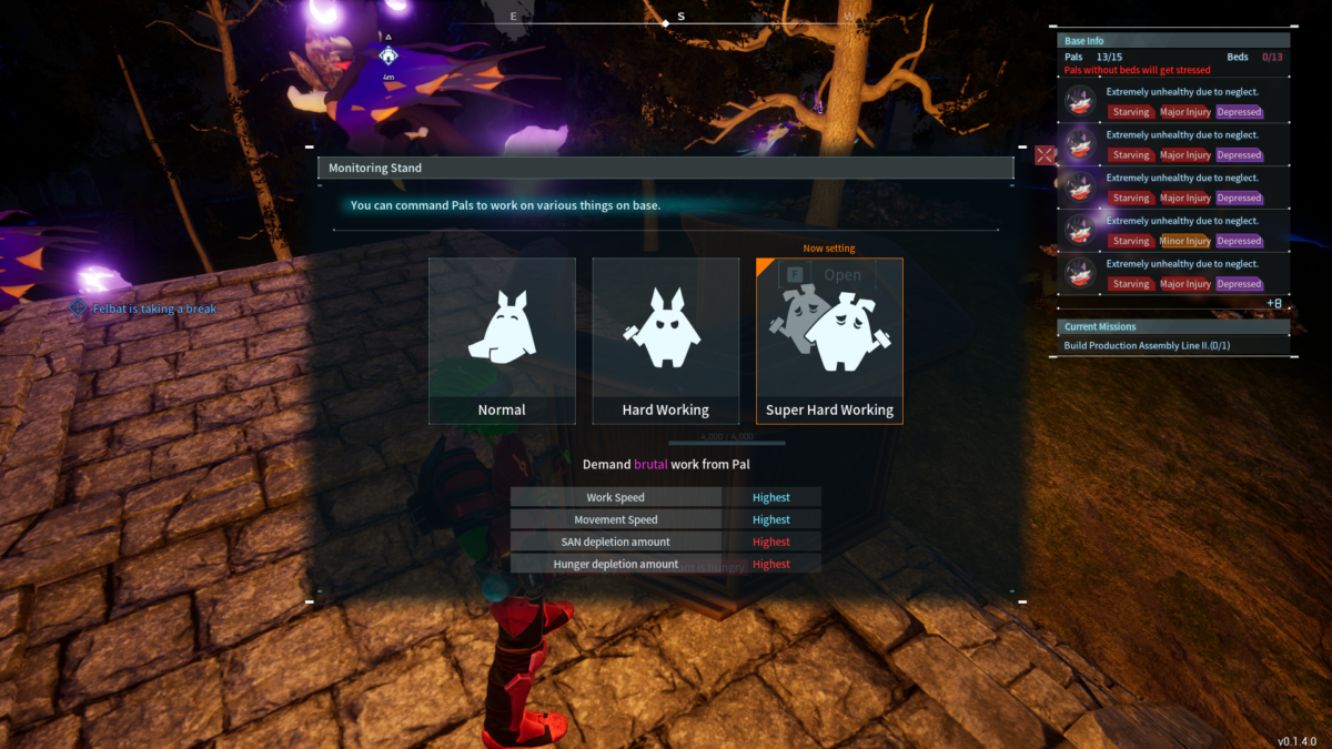 В ближайшем обновлении Palworld от PocketPair будет решена проблема с ограниченностью функционала стенда для наблюдения на базах игроков. В настоящее время стенд позволяет контролировать интенсивность работы палов с помощью всего трех опций. Сообщество давно заявляло о необходимости большей гибкости и конкретизации заданий. Новое обновление расширит эти возможности, как сообщил комьюнити-менеджер в официальном Discord игры. С обновленным стендом мониторинга игроки получат полный обзор всех палов, работающих на их базе, что позволит более точно распределять задания и исключать некоторые из них. На картинках ниже показана разница между старым стендом (первое фото) и новым (второе).