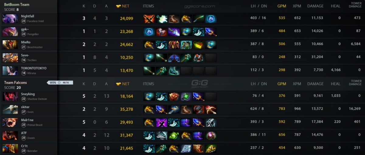 Вместе с титулом чемпиона Team Falcons заработала $300 тыс. и 4200 очков EPT. Серебряный призер BetBoom Team получил $175 тыс. и 3500 очков EPT.