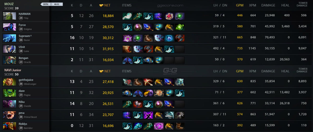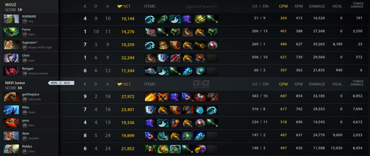 Состав NAVI Junior по Dota 2 стал чемпионом European Pro League Season 17. В решающем матче турнира академия “рожденных побеждать” оказалась сильнее MOUZ — 3:1.