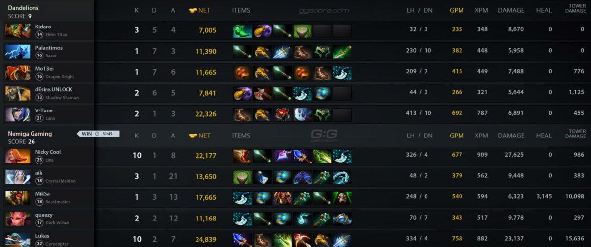 Вместе с титулом чемпиона Nemiga Gaming заработала $25 тыс. Для белорусской команды этот титул стал первым за последние полгода. Серебряный призер Dandelions получил $15 тыс.