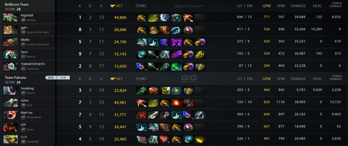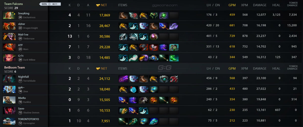 Falcons добралась до грандфинала через нижнюю сетку, проиграв первый матч в сетке виннеров Tundra Esports. На своем пути команд обыграла Team Liquid, OG и отомстила Tundra. Это уже 4-й финал для коллектива подряд. “Соколы” доходят до ТОП-2 абсолютно на каждом крупном турнире в 2024 году. Им уже покорились BetBoom Dacha Duba 2024 и DreamLeague Season 22. На Elite League команда заняла 2-е место.
