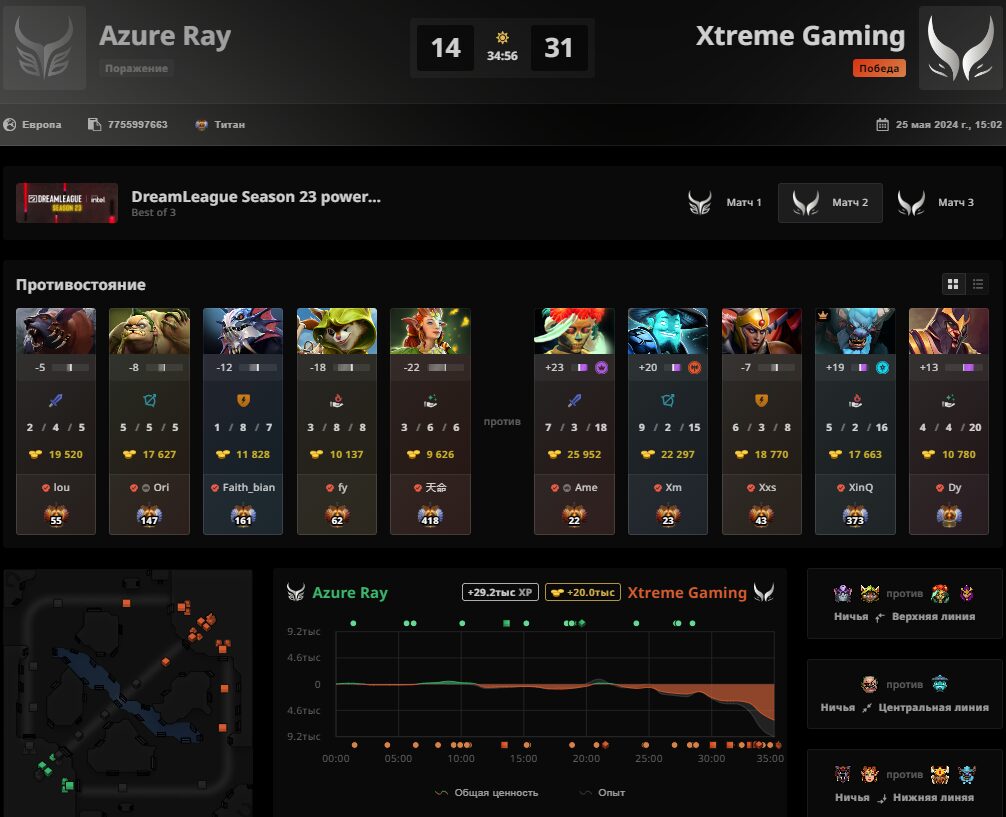 Завершился предпоследний игровой день DreamLeague S23 по Dota 2. Было сыграно три встречи в формате bo3 — две в верхней сетке и одна в нижней. Первым матчем стало китайское дерби на вылет между Xtreme Gaming и Azure Ray. Первая карта длилась больше часа и окончилась в пользу AR, хоть и после невероятного камбека. Но две другие карты практически без проблем ушли в пользу “экстримов”. Состав Faith_bian покинул турнир на 5-6 месте, заработав $57 500.