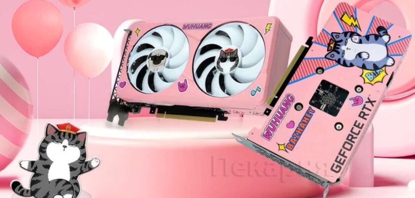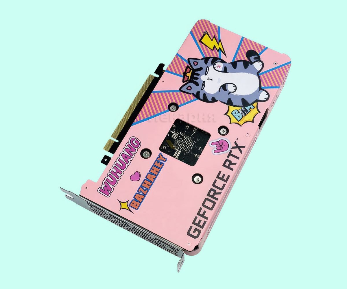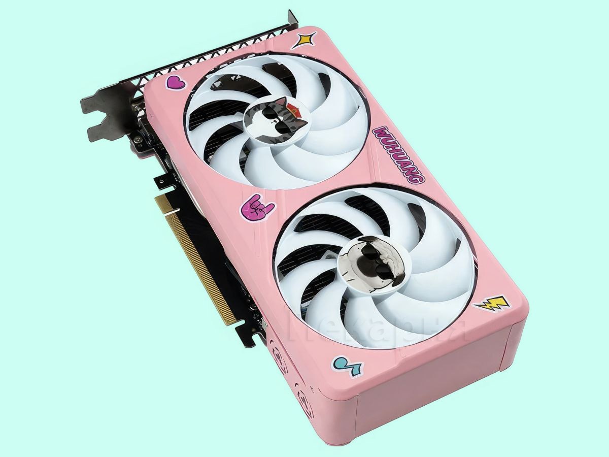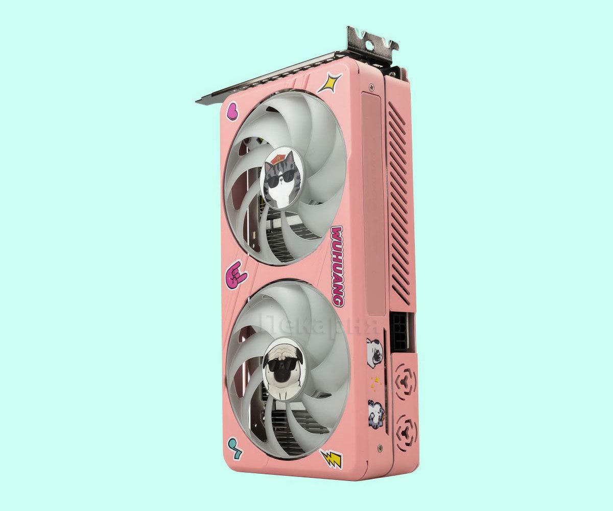 Компания ASL показала дизайнерский вариант видеокарты GeForce RTX 4060 под названием Wuhuang Edition. Модель окрашена в розовый цвет. На ней также можно заметить принт с котиком и собачкой. Но это не обычные животные, а популярные мультяшные персонажи в Китае. Их зовут Wuhuang и Bazhahey.
