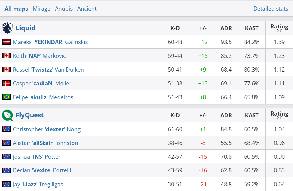 Завершился второй день плей-офф на ESL Pro League Season 19. Было сыграно четыре встречи в формате bo3. В первой паре игр G2 Esports и Team Liquid одолели андердогов из 3DMAX и FlyQuest. Однако команды из топ-15 мира не смогли закончить все всухую. И если у состава HooXi просто не пошел Anubis, то у “жидких” все три карты были близкими по счету.