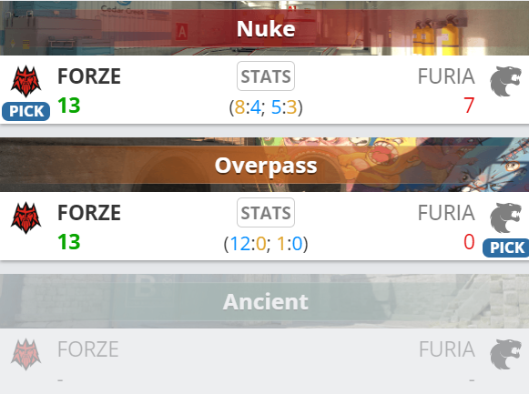 В средней сетке группы “С” состав FORZE без единого шанса уничтожил FURIA. Причем на второй карте бразильцы не смогли взять ни одного раунда. ENCE не без труда смогли победить Bad News Kangaroos. Но хоть австралийцы и забрали вторую карту, на решающей третьей поляки всухую разгромили своего оппонента — 13:0.