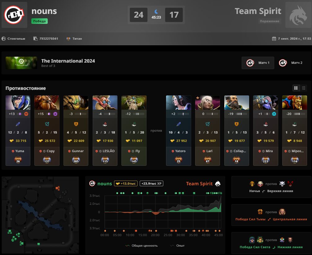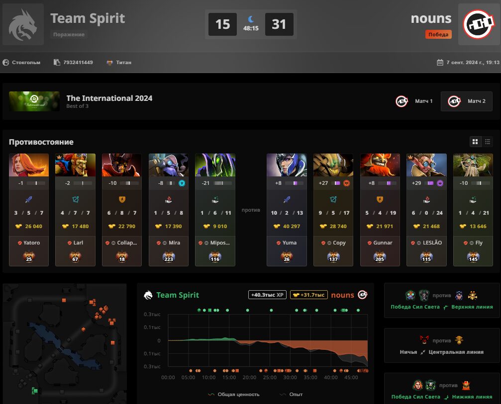 Team Spirit всухую проиграла коллективу nouns в рамках матча-посева в плей-офф The International 2024. Из-за этого поражения “драконы” начнуте мейн-ивент главного турнира года с сетки лузеров — без шанса на ошибку.