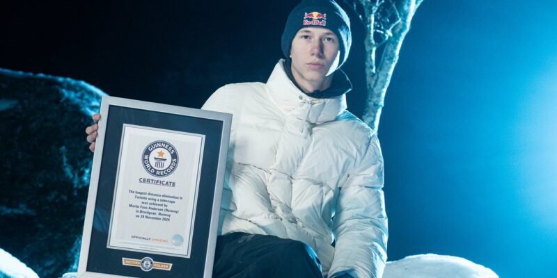 Норвежский игрок Fortnite, Мартин «Mr. Savage» Андерсен, вписал своё имя в Книгу рекордов Гиннесса. Он совершил невероятное — убил противника в игре с расстояния 1 километр от монитора. Это произошло 29 ноября 2024 года в Лофотене, Норвегия. Mr. Savage использовал телескоп с увеличением 100x, чтобы видеть экран в темноте и под дождём. Точный результат — 1161,31 метра, что вдвое превзошло прежний рекорд в 500 метров.