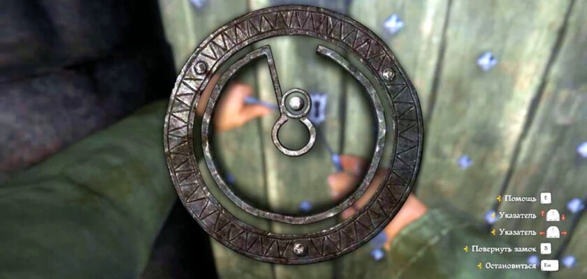 Подойди к двери или сундуку, нажми E (ПК) / X (PlayStation) / A (Xbox) и выбери “Взломать”.