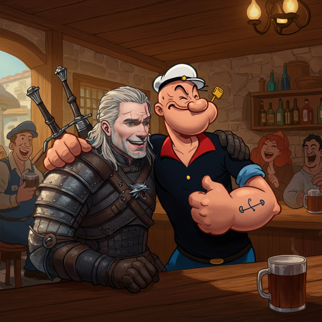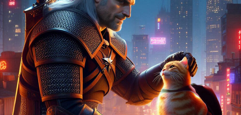 Художник-энтузиаст с ником bbbeto в очередной раз использовал нейросеть, чтобы представить Геральта из Ривии в необычных мирах. На этот раз Белый Волк оказался рядом с котом из популярной игры Stray, мрачным воином Гатсом из манги и культовой тетей Кэсс, известной из сериалов Netflix. Получились неожиданные и живые образы, которые словно рассказывают собственные истории.