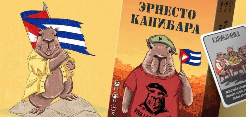 Издательство GaGa Games выпустило необычную настольную и карточную игру «Эрнесто Капибара», в которой от двух до шести игроков устраивают революцию… не особо напрягаясь. Задача — не спасать мир, а свалить заботы на других, копить напряжение и наслаждаться ленивыми капибарами с каламбурами.