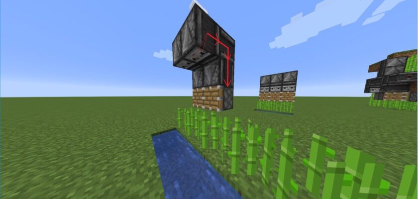 Когда тростник вырастет на 2 блока, наблюдатель активирует поршень, и всё автоматически упадёт в сундук.