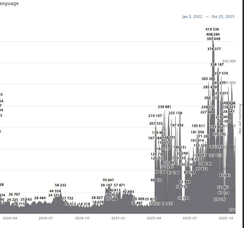 По наблюдениям GwinGlade, с апреля на платформе наблюдается аномальный всплеск регистраций из российского региона. Он предположил, что значительная доля этих аккаунтов может принадлежать ботам, а не реальным пользователям. Сам стример отмечает, что активность настолько выбивается из общих тенденций, что даже с YouTube и TikTok данные не совпадают. Теперь аудитория гадает, к чему приведет этот всплеск — и не ждет ли Twitch очередная волна чисток.