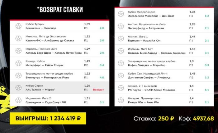 К радости любителей ставок со страховкой, такого рода прогнозы действительно можно добавлять в экспресс. Причем исход с возвратом части суммы при частичном совпадении условий получения выигрыша не способен полностью “обнулить” весь купон – экспресс просто пересчитают с учетом возвратов/половинных коэффициентов. Недостаток же заключается в том, что букмекер пересчитывает такие ставки по сложной системе дробных коэффициентов, и итоговый выигрыш может оказаться существенно меньше предполагаемого. Поэтому использование азиатских тоталов в длинных экспрессах нежелательно – потенциальный выигрыш просто не окупит сопутствующие риски.