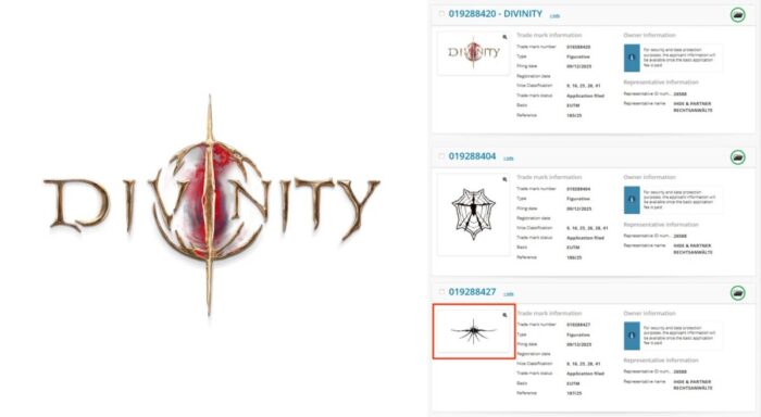 Сегодня в ЕС зарегистрировали три новых товарных знака по вселенной Divinity – один из них почти в точности повторяет форму щупалец на загадочной статуе из пустыни (с которой и начались слухи об анонсе).