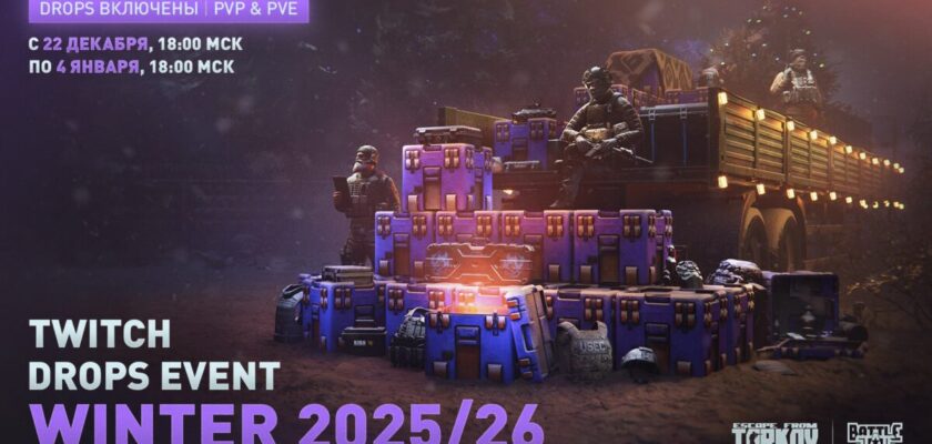До 4 января 2026 года игроки Escape from Tarkov могут получать бесплатные награды за просмотр трансляций игры на Twitch. В этом году Twitch Drops Event проходит с 22 декабря, 18:00 МСК, и продлится до 4 января, 18:00 МСК. Впервые награды стали доступны не только для PvP, но и для PvE-режима, что расширяет возможности получения бонусов для всех игроков. Организаторы обещают разнообразные подарки и уникальные предметы, которые можно получить исключительно во время новогоднего события, делая просмотр трансляций ещё более интересным и полезным.