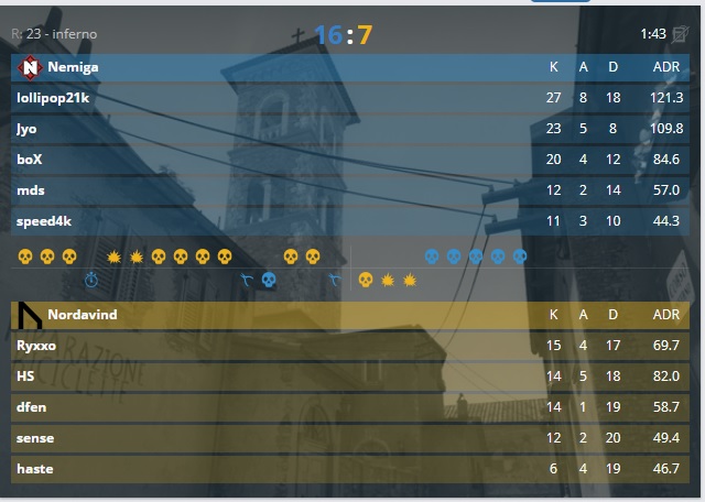 Nemiga Gaming обыграла Nordavind в матче группового этапа ESEA Season 35: Premier Division со счетом 16:7. Таким образом команда поднялась на 8 место в группе, имея на своем счету 9 побед и 7 поражений.
