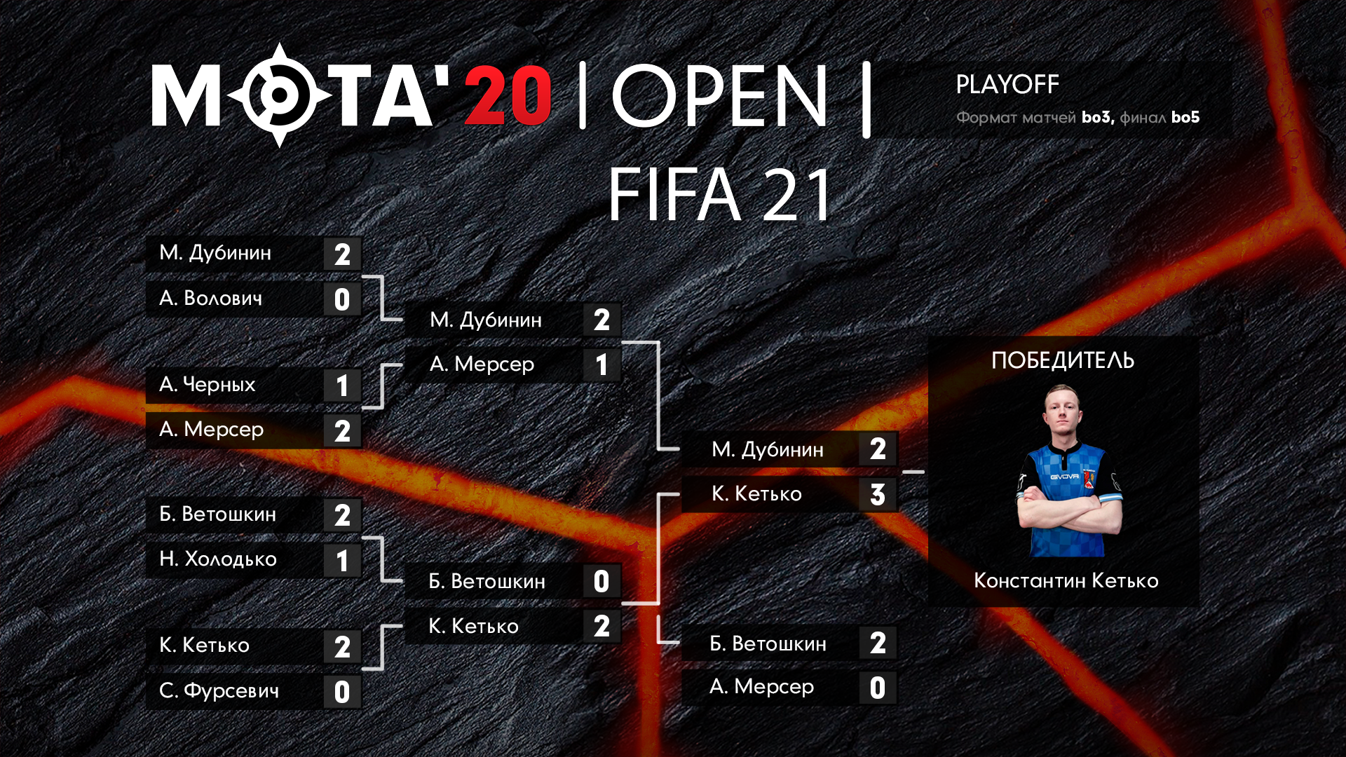 Константин Кетько, обыгравший в финале Максима Дубинина, стал победителем турнира МЭТА’20 Open по FIFA 21, организованного Белорусской Федерацией киберспорта.