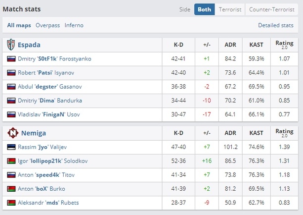 Белорусская команда Nemiga обыграла на групповом этапе турнира LOOT.BET Season 8 российскую ESPADA. Матч проходил до двух побед. Спортсмены играли на картах Overpass и Inferno. Первая завершилась со счетом 19-15, вторая 16-9.