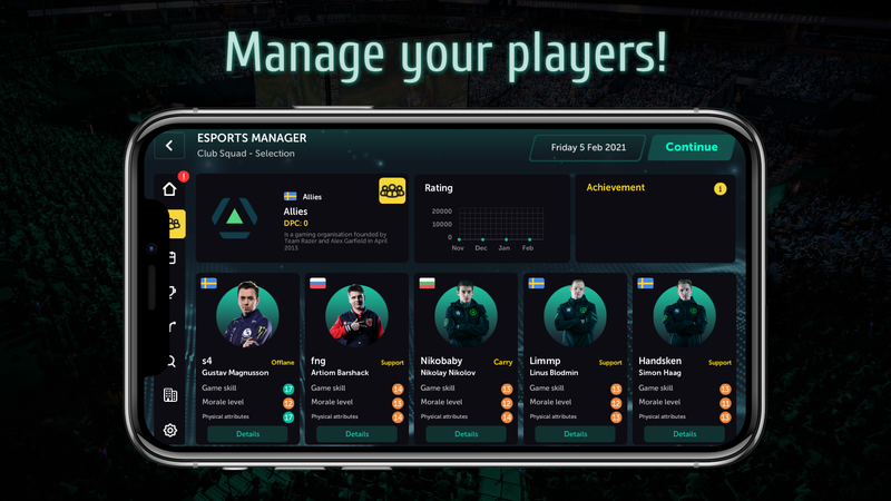 Пока возможно управлять составами только по дисциплине Dota 2, позже планируется добавить CS:GO, Hearthstone и StarCraft 2. Игрокам нужно будет полностью организовывать деятельность профессиональной команды: покупать и продавать игроков, налаживать тренировки, решать конфликты между игроками и прочее.