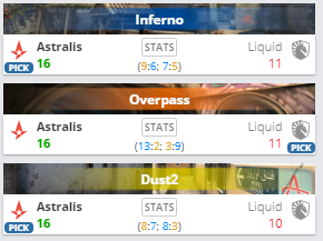 Astralis одержала победу над Team Liquid в гранд-финале IEM Global Challenge со счетом 3:0. Astralis заработала $200 тыс. за первое место, а Liquid забрала $100 тыс. за вторую позицию на турнире.