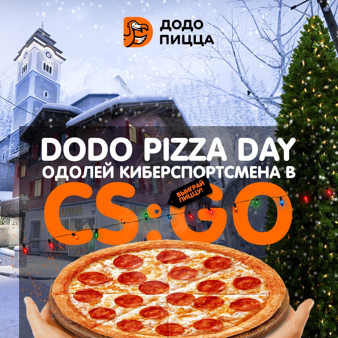 В пятницу 25 декабря в 19:00 стартует рождественский Dodo Pizza Day. Его участники получат возможность сыграть в матче CS:GO 1 на 1 против нашего геймера. Победитель дуэли (до 5 побед) получит промокод на бесплатную пиццу от “Додо Пицца”! Матчи проходят до определения десяти победителей.