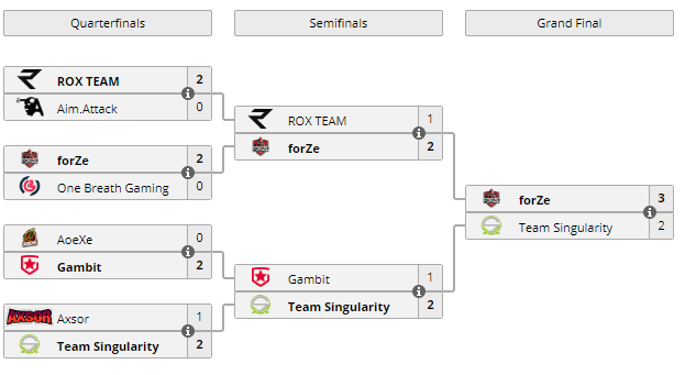 Команда forZe, в составе которой выступают белорусы Никита Coffee Анцыпирович и Николай zeddy Лапко, в финале First Strike СНГ нанесла поражение Singularity (3:2) и одержала победу на турнире. Чемпионы заработали 21 600 $.