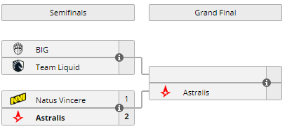 Astralis обыграла Natus Vincere в матче полуфинала плей-офф IEM Global Challenge со счетом 2:1. Таким образом NaVi заработала $50 тыс и отправилась на 3-4 место соревнования. Astralis же прошла в финал, матч назначен на 20 декабря в 19:00.