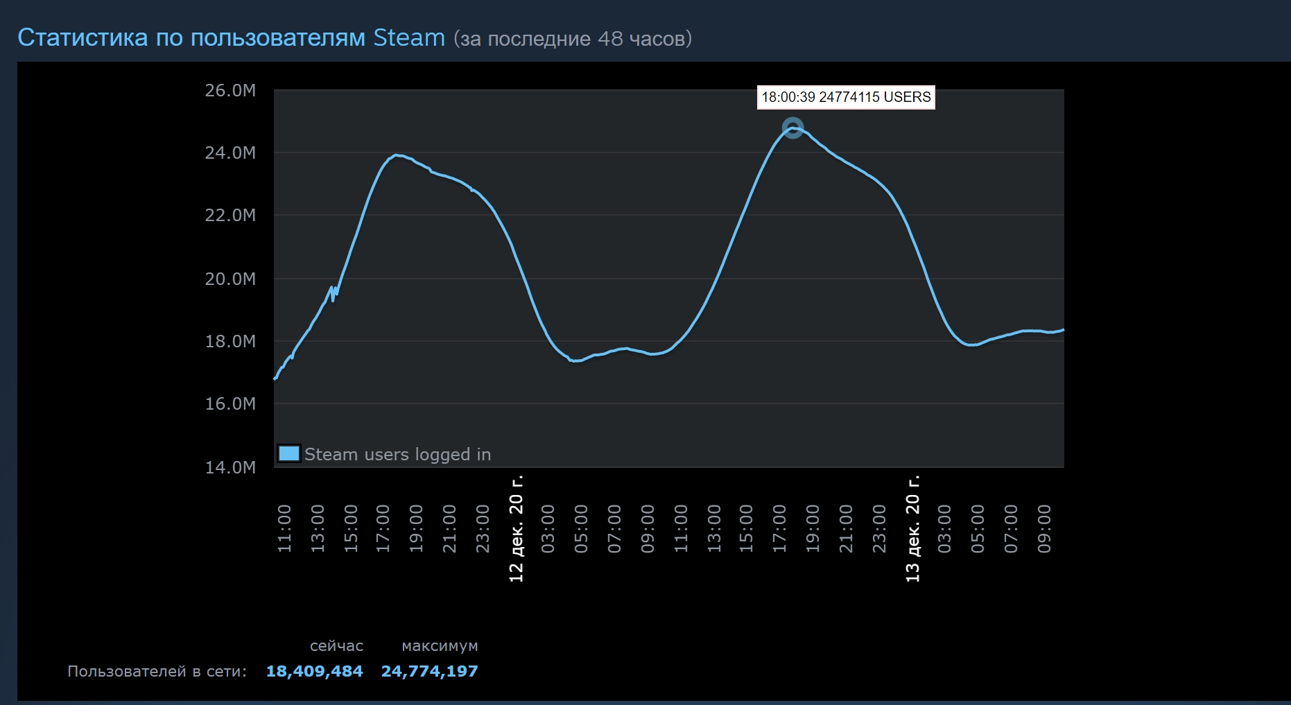 На площадке Steam установили новый рекорд — 24.7 млн игроков были онлайн одновременно. Последний рекорд поставили буквально недавно, 4 апреля сервисом пользовались 24.5 миллиона игроков.