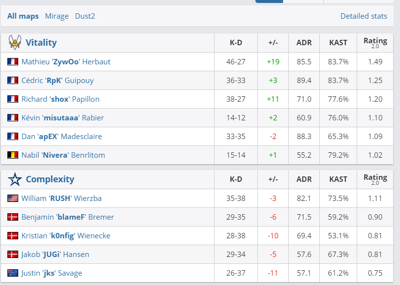 В четвертьфинальном матче BLAST Premier: Global Final 2020 команда Vitality оказалась сильнее Complexity. Встреча завершилась со счетом 2:0.