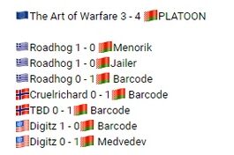 В матче групповой стадии Validity Team League Season 9 по StarCraft 2 киберспортивная организация PLATOON обыграла The Art of Warfare со счетом 4:3.