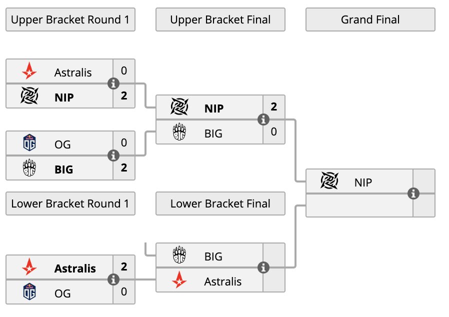 Astralis в игре нижней сетки группы “А” BLAST Premier: Spring 2021 нанесла поражение OG. Счет — 2:0. Проигравшие покинули турнир. Победители же продолжат выступление 6 февраля матчем против BIG за право выхода в гранд-финал.