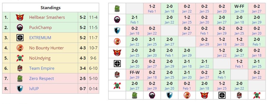 EXTREMUM, No Bounty Hunter, NoUndying с Олегом Lasthero Демидовичем и Team Empire, за которую выступают Алексей Smiling Knight Свиридов и Владислав Petushara Козловский, продолжат участие в нижней сетке турнира. Команды Zero Respect и lvlUP покидают турнир.