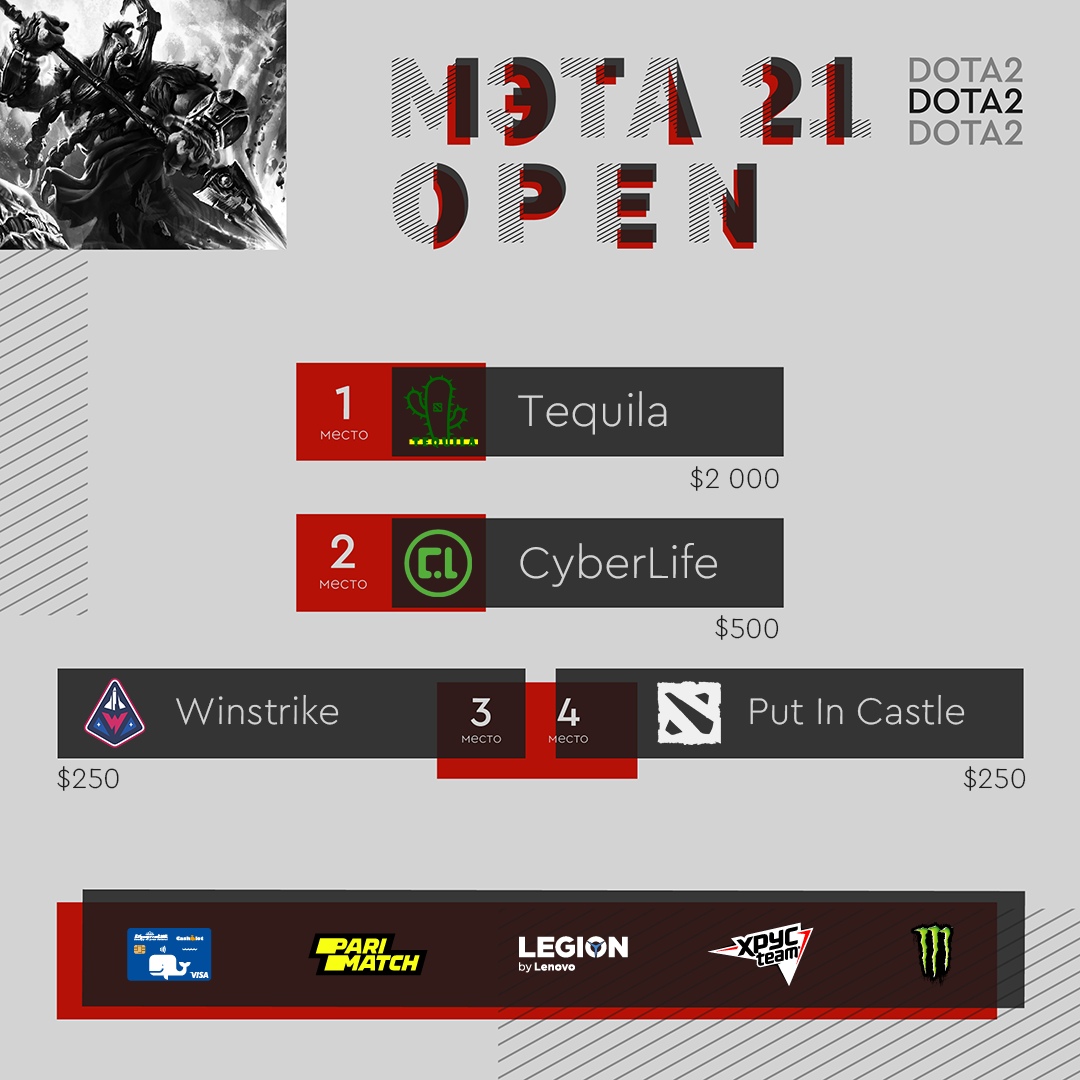 В гранд-финале МЭТА’21 Open по Dota 2 от Белорусской Федерации киберспорта коллектив Tequila обыграл CyberLife со счетом 2:1. За первое место Teqilla заработала $2 000, а Cyberlife за второе — $500.