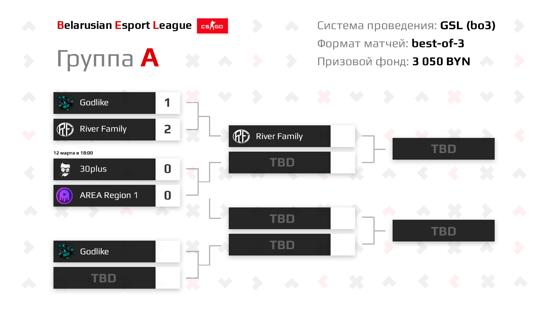 Belarusian Esports League — любительский турнир для белорусов, к участию в котором не допускаются профессиональные игроки. Основная часть лиги по CS:GO проходит с 11 по 21 марта. Каждая выигранная серия (bo3) будет приносить коллективам по 150 рублей, дополнительные 150 рублей полагается за 1-е место по итогам группового этапа. Еще 500 рублей достанутся чемпионам турнира. А два сильнейших коллектива получат приглашения на МЭТА’21 Open с призовым фондом в $3000.