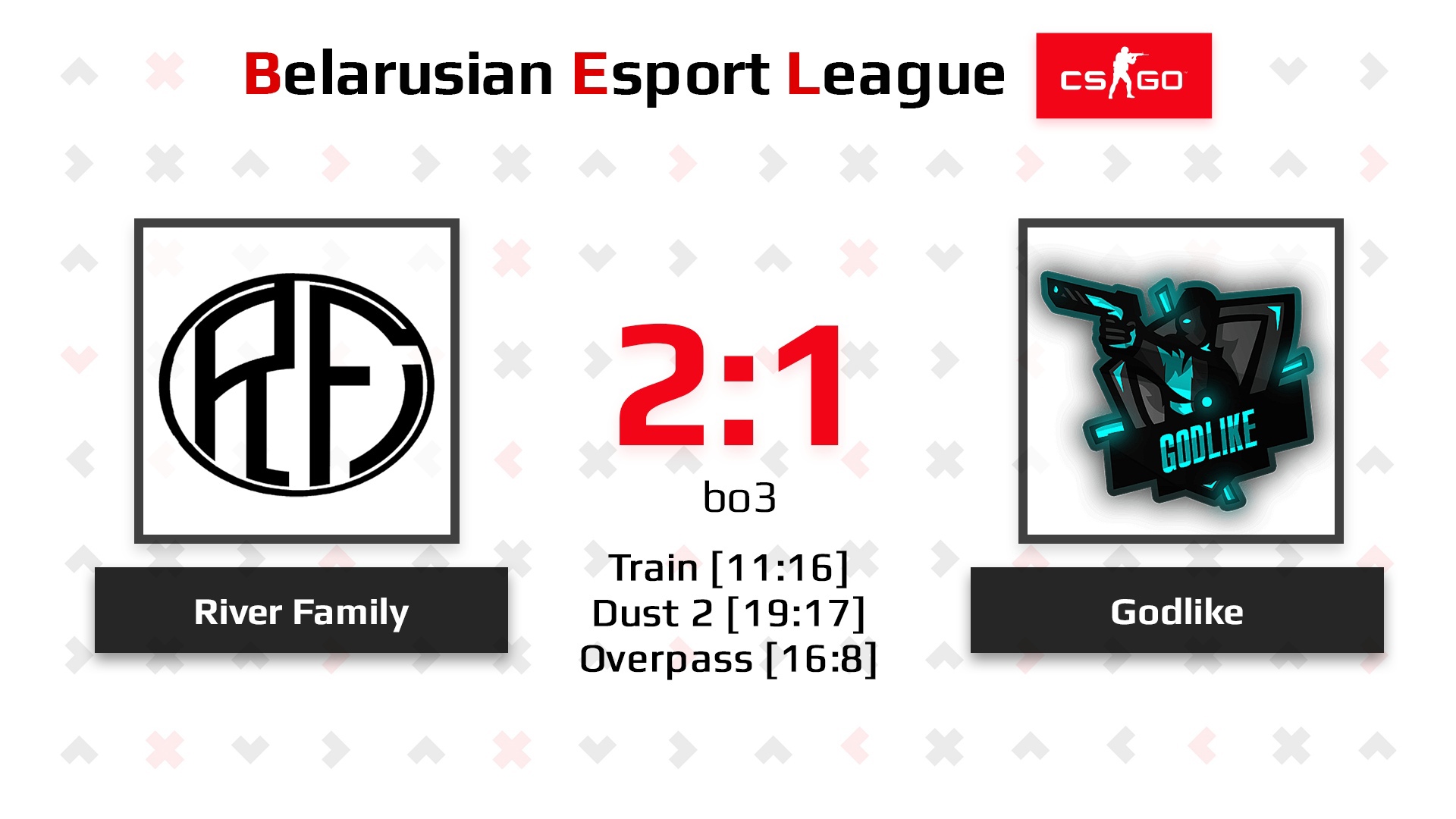 в матче группы “A” Belarusian Esports League переиграла коллектив Godlike со счетом 2:1 “Семья” продолжит борьбу в верхней сетке турнира. Проигравших ждет борьба в нижней.