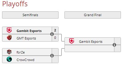 В финале турнира Gambit встретится с победителем пары forZe и CrowCrowd. За forZe выступают белорусы coffee Анцыпирович и Николай zeddy Лапко.