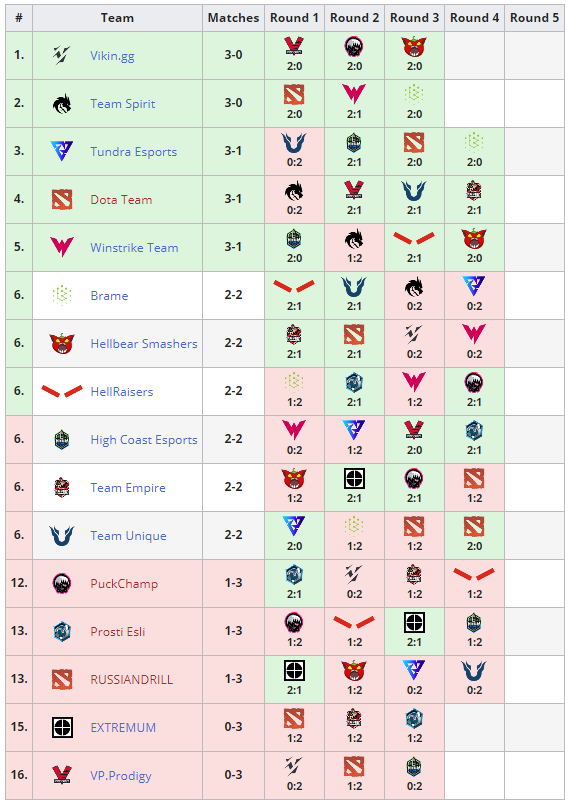 Турнирная таблица групповой стадии: