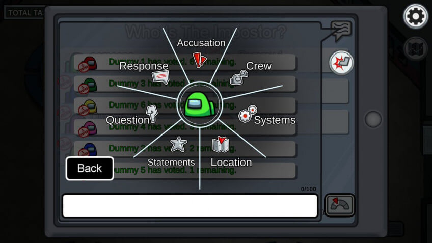 Студия InnerSloth выпустила обновление для Among Us, оно добавило в игру новую функцию для чата, которая поможет быстро принимать решения. Теперь во время обсуждения пользователи смогут оперативно отвечать при помощи колеса самых употребляемых реплик.