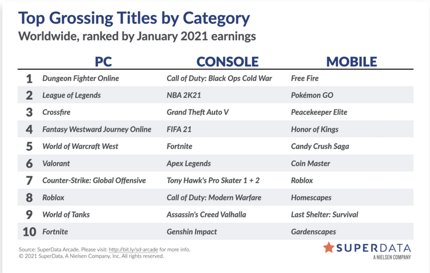 Самым прибыльным тайтлом января стала Dungeon Fighter Online. Valorant расположилась на шестой строчке в общем зачете, а CS:GO остановилась на позицию ниже.
