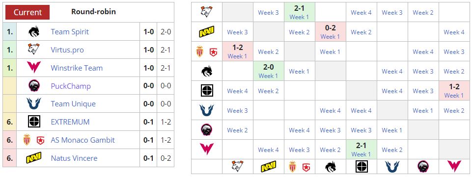 16:00 Team Unique vs Puckchamp — трансляция здесь. За Unique выступает белорус Никита Palantimos Гринкевич, а в составе PuckChamp играет наш соотечественник Геннадий Astral Мотуз.