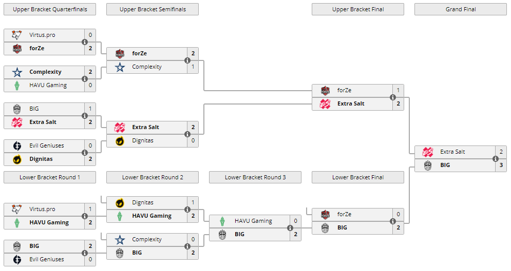 В гранд-финале Funspark ULTI 2020 состав BIG в напряженной борьбе одолел команду Extra Salt. Встреча началась с преимуществом Extra Salt в одну карту, т.к. коллектив прошел до итогового матча по верхней сетке.